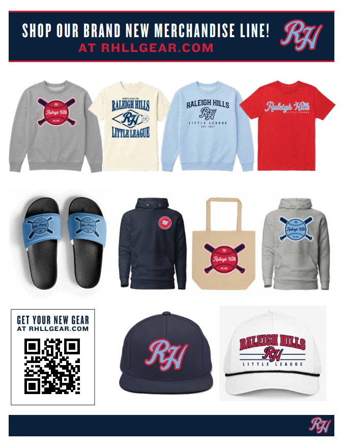 New merch site: With the launch of our brand new merchandise website, https://rhllgear.com/ , we've moved to an on-demand production model; creating a true 365-day-a-year ecommerce site for the league. This allows for RHLL community members to order product at any time, and it will be shipped to your doorstep in 5-10 days. We believe this model is a game changer for the league as it allows us to have a much wider product offering, will allow for special and seasonal releases, and more. While we're very excited about this initial offering, we look forward to evolving it over time and creating what we hope will be the most robust Little League merch line anywhere.
